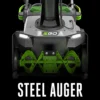 - Steel auger cuts through ice and snow