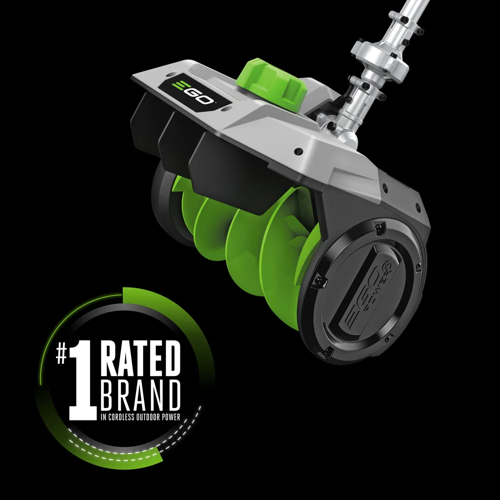The Snow Shovel Kit is a part of the EGO POWER+ Multi-Head System. Directional control of its up to 25-foot throwing distance makes it unlike any other cordless snow shovel on the market. The electric snow shovel attachment cleans a 12-inch-wide path, making it great for snow removal on sidewalks, driveways, and decks. Clear 6 inches of snow on a 4-car driveway with the included 56V 4.0Ah ARC Lithium™ battery. This electric shovel features an innovative overload protection system that temporarily disengages auger rotation under extreme load and unexpected jams to prevent damage to the motor and electronics. The Power Head is compatible with all EGO Multi-Head attachments so you have the flexibility with the system. Equipped with a high-efficiency brushless motor, variable speed trigger, two-speed selector, and lock off switch for added safety. This combo kit includes the electric Snow Shovel Attachment, Power Head, 56V 4.0Ah ARC Lithium™ battery, and 320W charger. Experience Power Beyond Belief™ without the noise, fuss, and fumes.